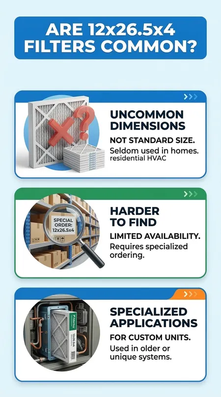 The 12x26.5x4 filter is not a universal standard size, but it is a recognized residential dimension tied to specific HVAC equipment configurations.